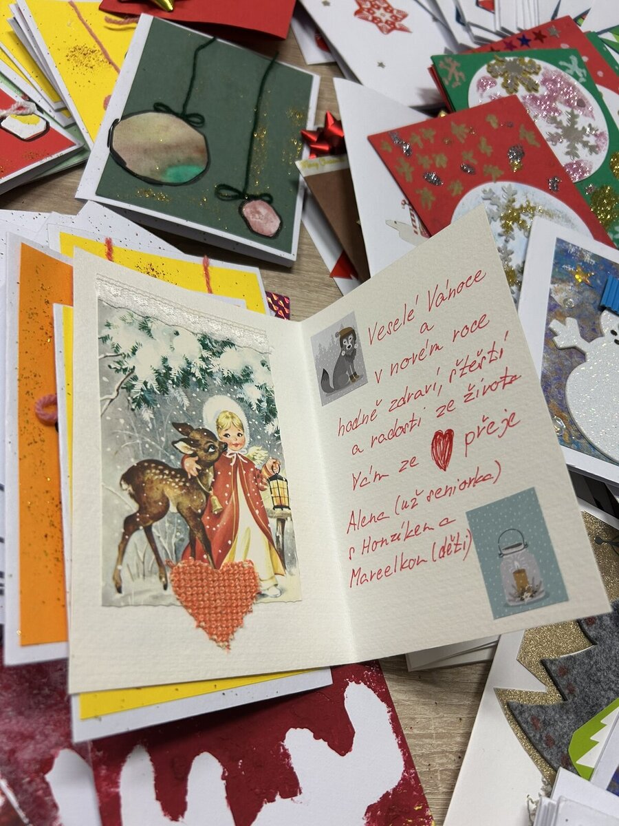 K přáníčkům pro naše seniory a nemocné se letos sešlo tolik barev, nápadů a radosti, až nám oči přecházely! Velcí i malí malíři do nich vložili svou fantazii, dětskou hravost, laskavost a hlavně – kus svého srdce. Každé přáníčko je originál, který dokáže vykouzlit úsměv, překvapení i dojetí.